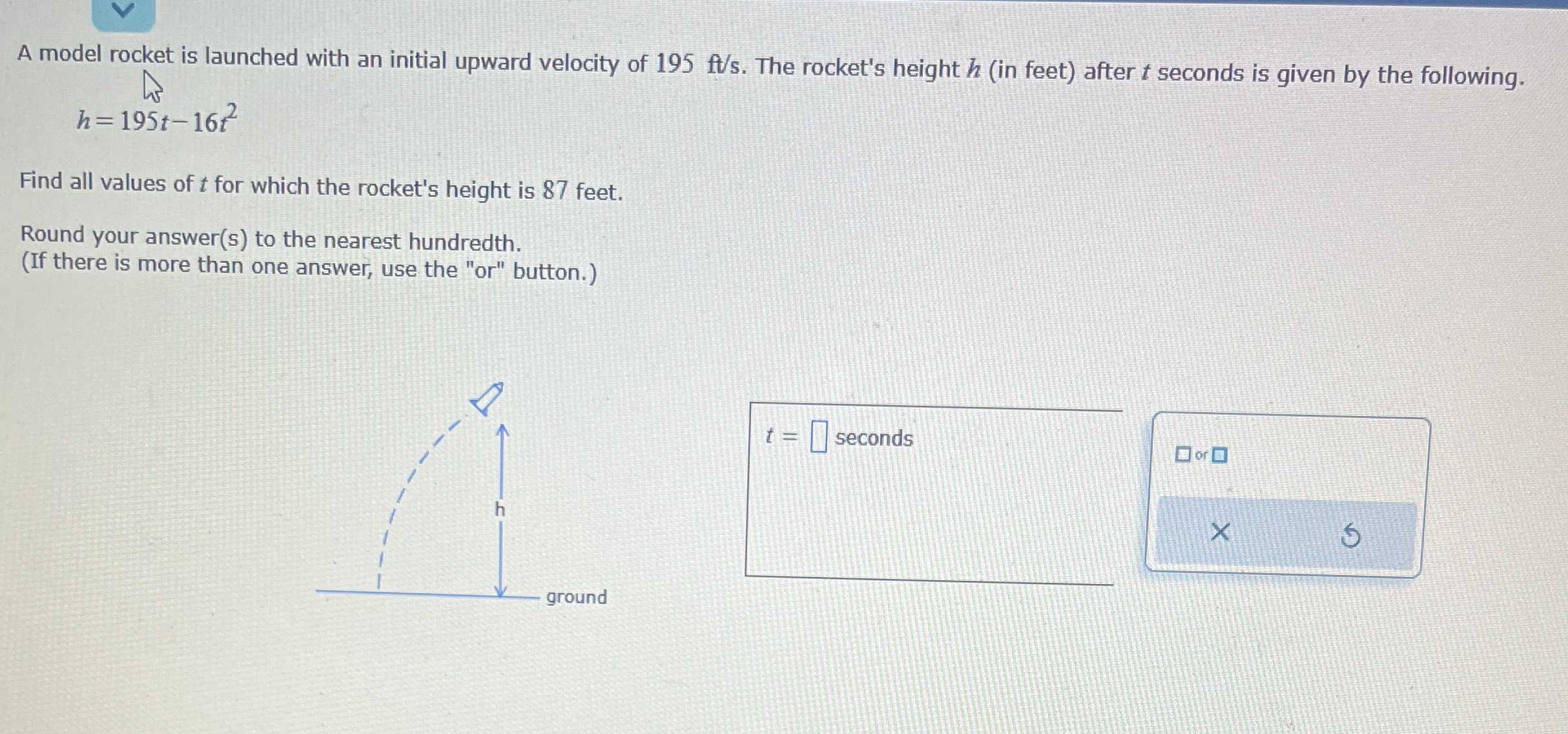 Answered A model rocket is launched with an… bartleby A Model Rocket Is Launched With An Initial Upward Velocity Of 39 M/S The rocket’s height h (in meters). Find all values of t for which the. The rocket's height h (in meters) after t. A model rocket is launched with an initial upward velocity of 35 m/s. The height in feet, of the rocket t. The rocket's height h (in feet) after t seconds is given by the following. a model. A Model Rocket Is Launched With An Initial Upward Velocity Of 39 M/S.